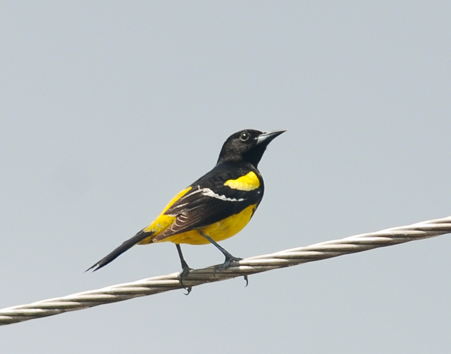 DSC_0805I will never not stop at this place again. Within 30 seconds of walking into the sanctuary, we heard and spotted a male White-collared Seedeater tee’d up in a spindly tree. At least one if not two more were doing the same elsewhere along the riverbank, and there were birds everywhere trying to get one last bite to eat before settling in for the night. On the Mexican side of the river was a large vulture/Crested Caracara roost, and Caracaras just kept streaming in as we watched. Flocks of migrant Scissor-tailed Flycatchers passed north over the river; one flock contained one of the few Western Kingbirds we would see on this trip. An odd call from the thicket proved to be a flightless young Long-billed Thrasher. And besides having such great looks at the Seedeaters, we encountered three other borderland specialties- Audubon’s Oriole, Gray Hawk and right at dusk a Clay-colored Thrush was mewing from the dark by our car! Fantastic. And it was only the end of day two.