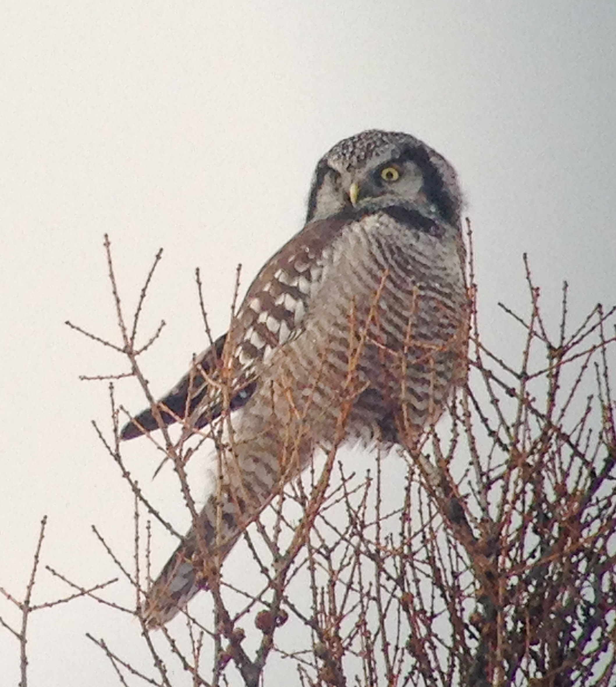 It was a great weekend, and somewhat of a rare treat to hang out with so many birdy folk for a few days in a row. Hopefully I will make the Sax Zim fest again next winter, it is certainly worth the effort and the cold! Oh and lucky me, as I drove home back to the UP, I made one more stab for the Gyrfalcon and all though brief, was rewarded with a look at one of the coolest avian predators there ever was!